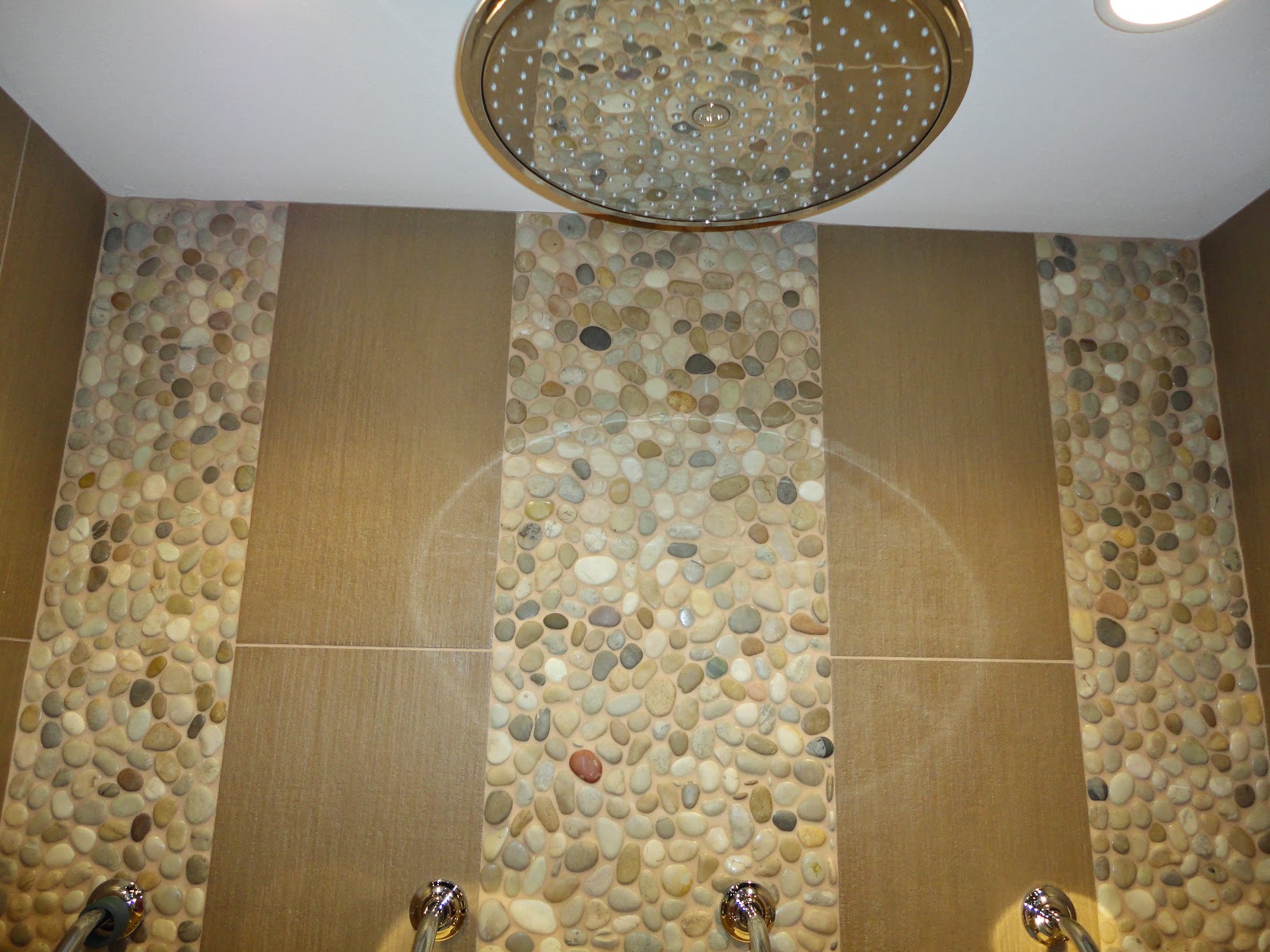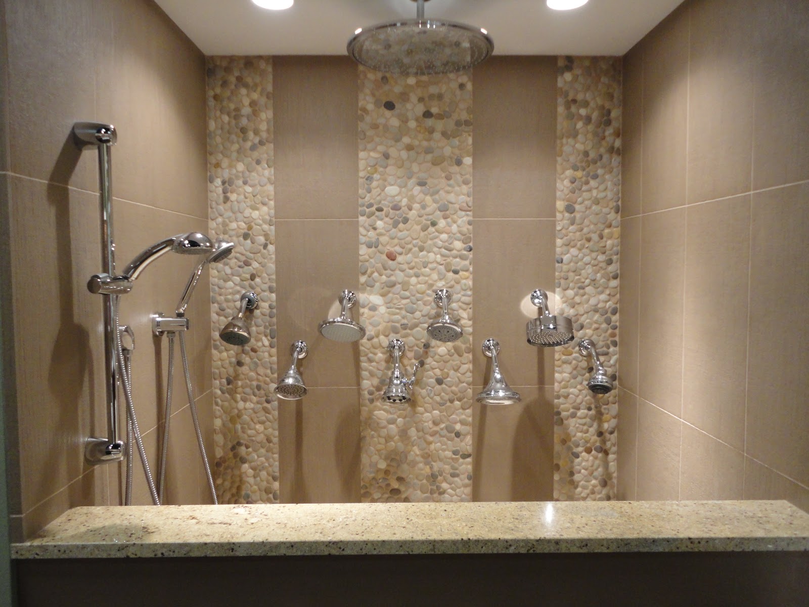 Gorman's bath gallery in Sarasota,FL. We tiled a working shower head display. The tile was mud set to achieve perfectly plumb surfaces and a narrow joint. The showers were grouted using epoxy from Laticrete to create a maitenane free display.