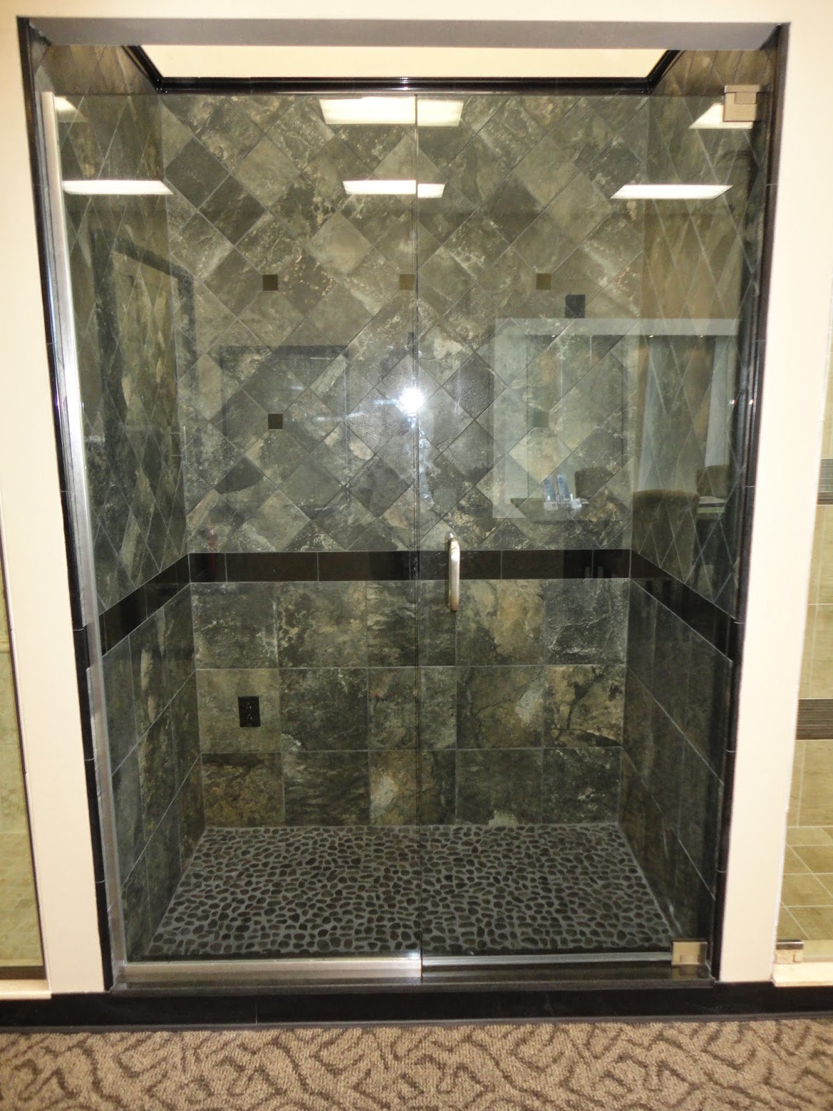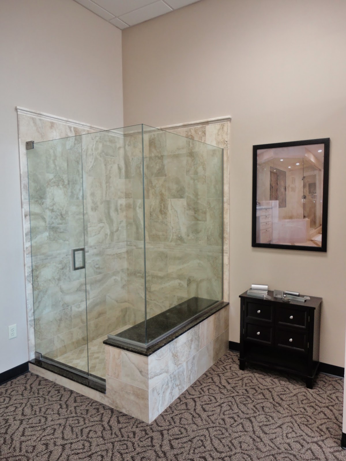 Here are four shower displays we built for My Shower Door in their Sarasota location. They display the different types of glass enclosures that they offer to their customers. My Shower Door installed the frameless glass door for my mothers shower after I remodeled her home. They did an amazing job, the door really makes the bathroom look larger and you can see her beautiful tile work clearly now. The frameless shower doors are the way to go and their company is top notch, I would highly recommend them to any one looking for a glass enclosure. The tile and design was provided by La Casa Tile in Sarasota, they did a beautiful job mix and matching the tiles to create the four unique shower displays. All the tiles are made from either porcelain, marble, and granite. You can see more of our work at www.houzz.com/projects/vanosdoltile